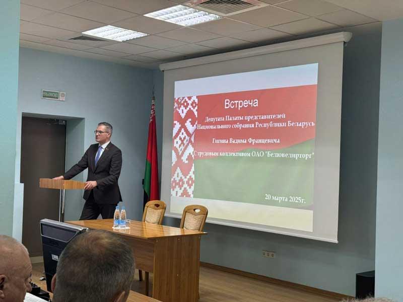 В рамках проведения Единого дня информирования с трудовым коллективом ОАО "Белювелирторг" встретился Депутат Палаты представителей Национального собрания Республики Беларусь Вадим Гигин. Депутат подробно раскрыл тему единого дня информирования - "Конституция Республики Беларусь - правовой фундамент единства и процветания белорусского народа", осветил основные преимущества действующей Конституции, рассказал о составе, функция и задачах Всебелорусского народного собрания.