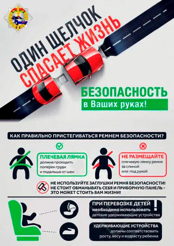 26 июля 2024 года в Республике Беларусь пройдет Единый день безопасности дорожного движения под девизом «Сел в машину – пристегни ремень!», направленный на пропаганду использования средств пассивной безопасности (ремни, детские удерживающие устройства, шлемы).