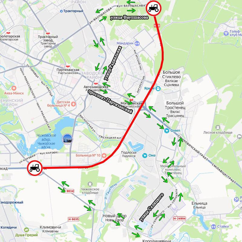 - автодорога Н-9034 - ул. Селицкого - пр. Партизанский;