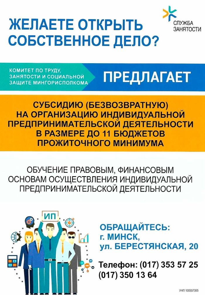 За более подробной информацией необходимо обращаться: управление занятости населения г.Минска, ул. Берестянская, 20, телефон 353-57-25; 347-13-51;