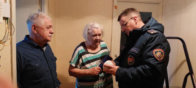 В рамках широкомасштабной информационной кампании о необходимости установки АПИ среди населения и при поддержке Минского отделения Белорусского добровольного пожарного общества начальник Партизанского районного отдела по чрезвычайным ситуациям Олег Агейчик совместно с представителем территориального центра социального обслуживания населения установили автономный пожарный извещатель одиноким пожилым гражданам. Сотрудники МЧС продемонстрировали принцип действия этого полезного прибора и подчеркнули важность его регулярного обслуживания. Также спасатели МЧС напомнили основные правила безопасности, которые необходимо соблюдать в повседневной жизни. Кроме того, они вручили наглядно-изобразительную продукцию на память. Пожилые люди выразили благодарность спасателям за помощь и внимание и отметили, что установка пожарного извещателя придаст им чувство безопасности и спокойствия.