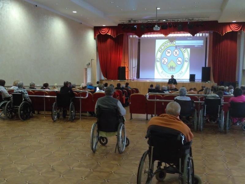 Людям, находящимся на обслуживании в доме-интернате, работники МЧС рассказали о наиболее распространенных причинах пожаров, привели примеры серьезных пожаров, которые произошли в последние годы на территории Партизанского района. Обсудили с ними и действия в случае возникновения различных чрезвычайных ситуаций. Всем присутствующие получили тематические буклеты.