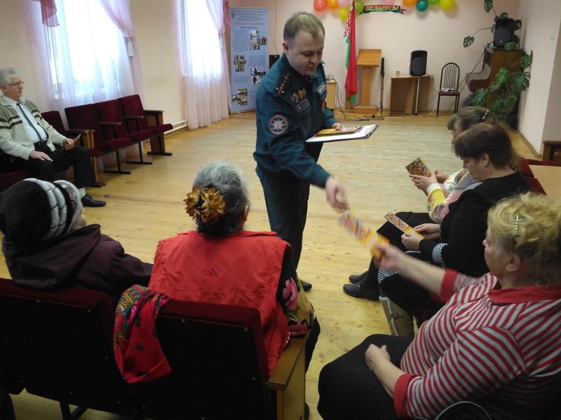 В рамках республиканской профилактической акции «Безопасность в каждый дом!» работники МЧС Партизанского района приняли участие в развлекательном мероприятии, которое состоялось для пожилых жителей района на базе ГУ «Территориальный центр социального обслуживания населения Партизанского района». Здесь граждане узнали много полезной информации по соблюдению правил безопасности, которую необходимо знать любому человеку. Общение с работниками МЧС прошло в форме открытого диалога. Пожилые люди задавали вопросы по правилам эксплуатации автономных пожарных извещателей, а также их интересовали вопросы безопасной эксплуатации газовых устройств и агрегатов. На память о встрече все получили информационные буклеты и календари на текущий год с символикой МЧС.