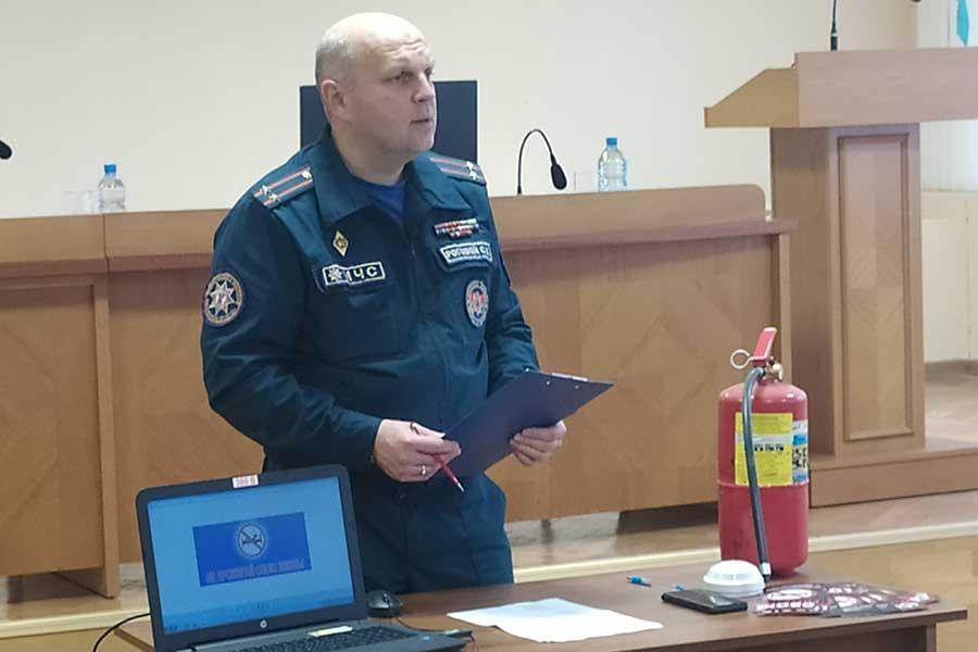 Начальник Партизанского РОЧС Сергей Роговой встретился с работниками ГЛУ «Минский лесхоз».