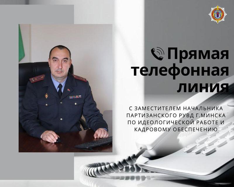 В понедельник заместитель начальника по идеологической работе и кадровому обеспечению Партизанского РУВД г.Минска проведет прямую телефонную линию