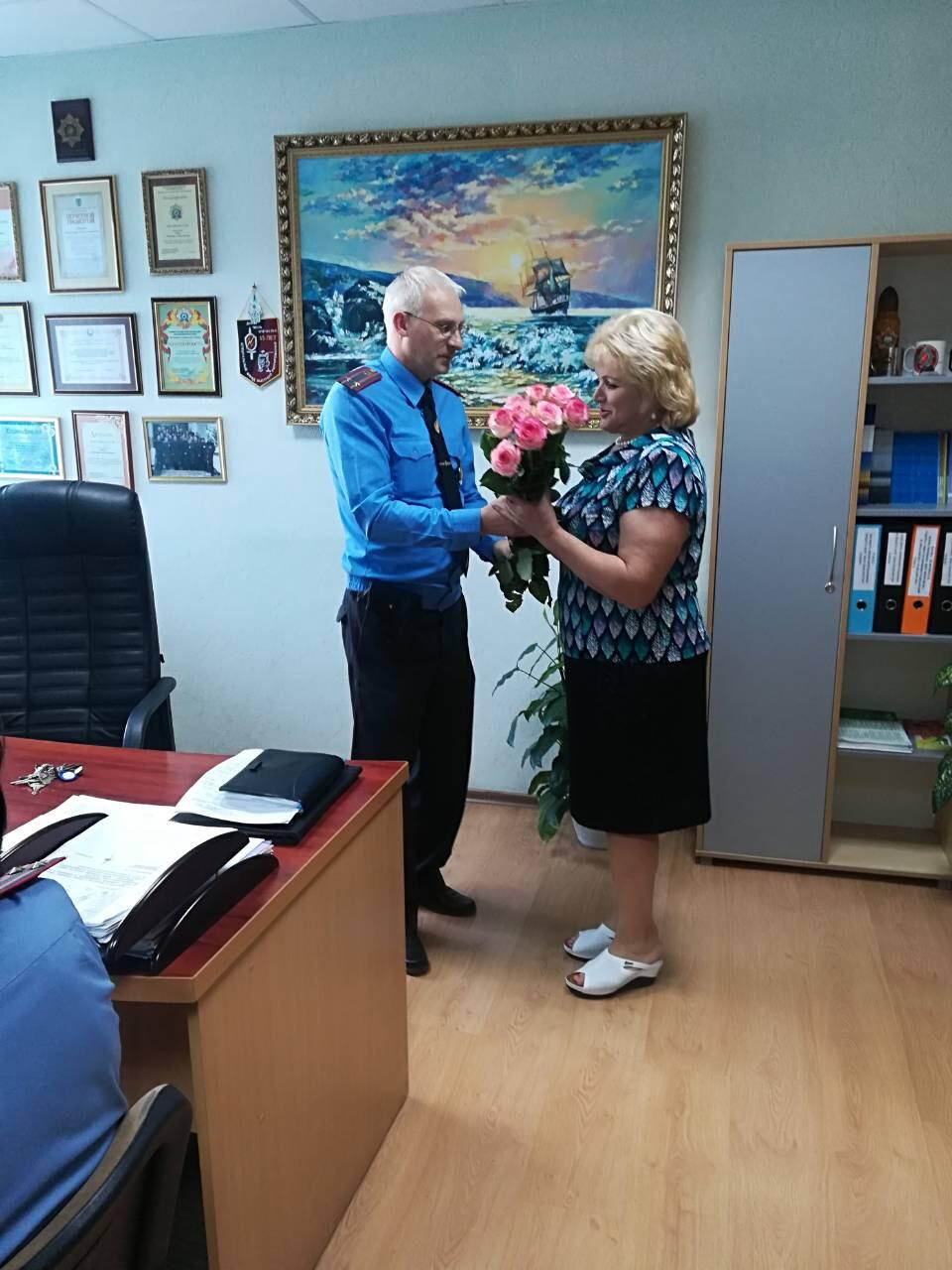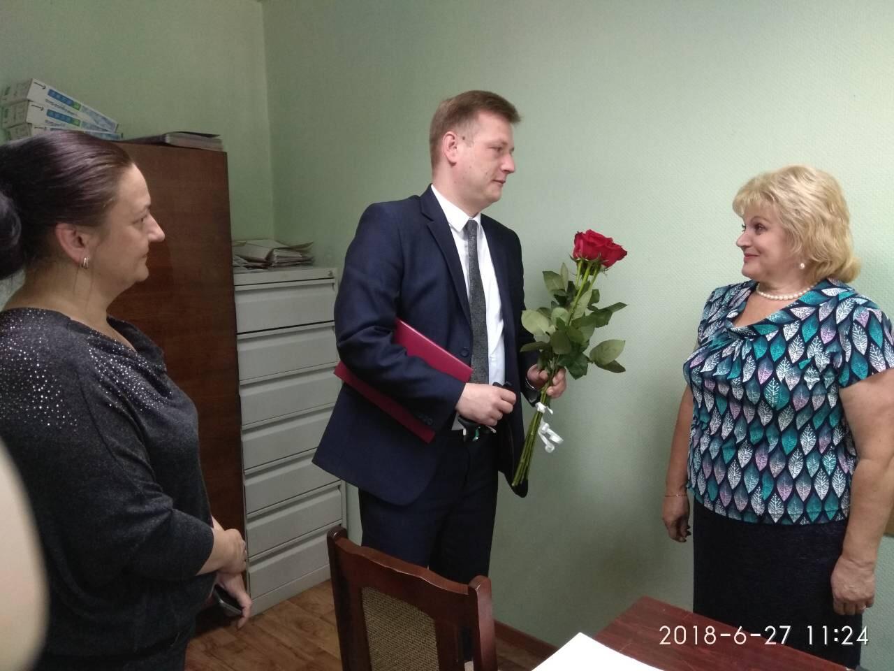 Сотрудники Партизанского РУВД во главе с начальником районного управления подполковником милиции Кириллом Кисловым поздравили с юбилеем паспортистку ОГиМ, которая работает в РУВД более 27 лет.