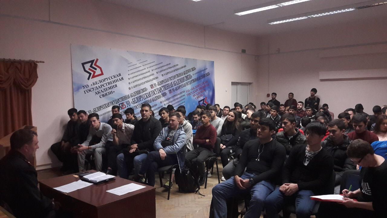 Заместитель начальника отдела по гражданству и миграции майор милиции Алексей Гришан ознакомил студентов с правилами пребывания в Республике Беларусь, с процедурой открытия и продления визы, оформления документов при выезде на каникулы. Студентам были разъяснены правила оформления временного проживания, ответственность за нарушение сроков регистрации и временного проживания. Особое внимание уделил ответственности иностранных студентов за административные правонарушения против общественного порядка и нравственности, в частности, за мелкое хулиганство и распитие алкогольных напитков в общественном месте.