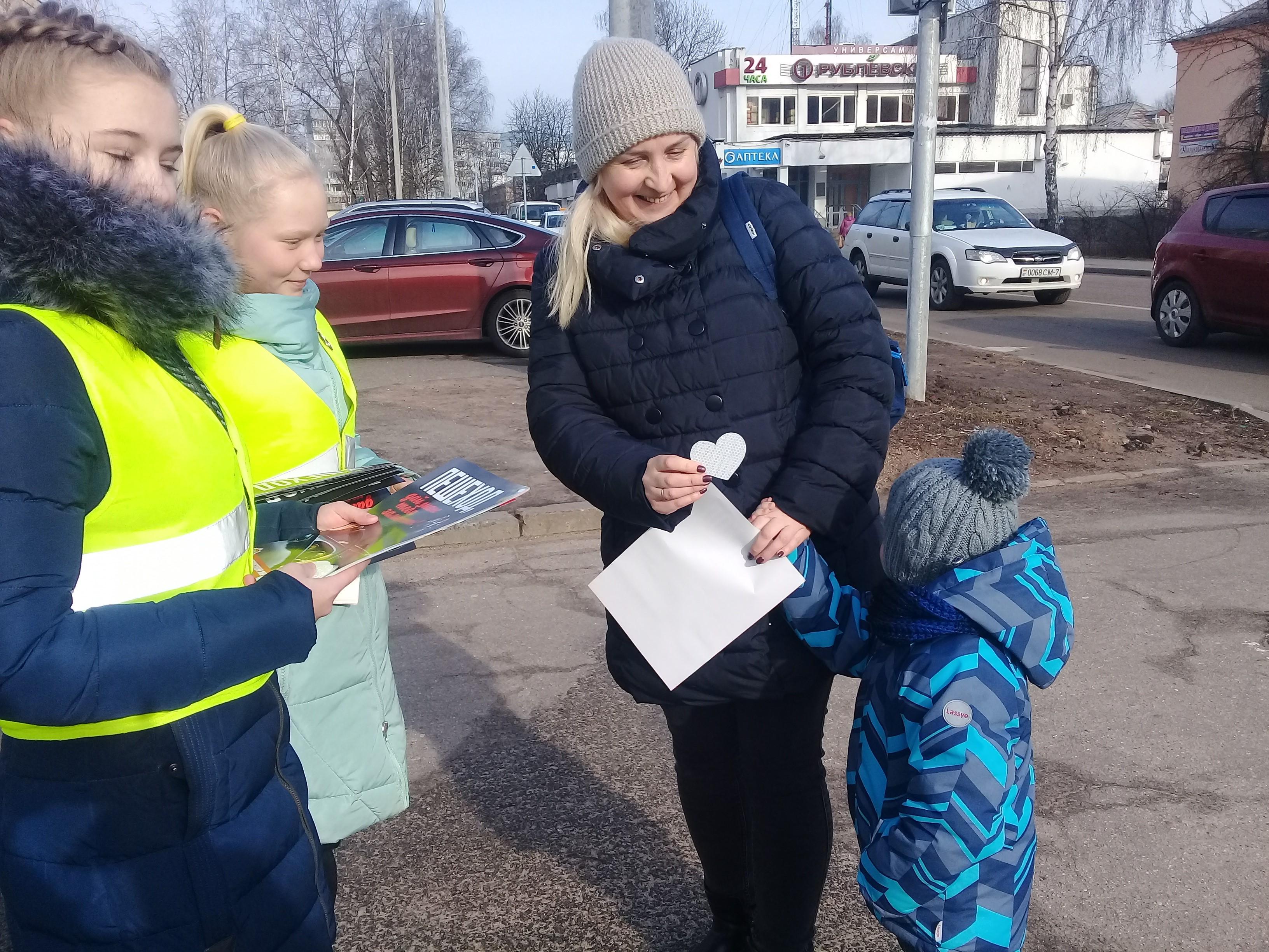 Как рассказали в районной Госавтоинспекции, отряды юных инспекторов движения существуют в каждом учреждении среднего образования города. Ребята не только сами постигают азы безопасного поведения на дороге, но и учат своих же однокашников Правилам дорожного движения. Кроме того, по своей инициативе юные помощники милиционеров посещают с тематическими программами младших школьников, а малышей из детских садов. Нередко инспекторы ЮИД принимают участие в профилактических акциях, которые организовывает Госавтоиспекция. День влюбленных не стал исключением. Ребята заблаговременно подготовили светящиеся в темноте валентинки и с радостью вручили их прохожим.