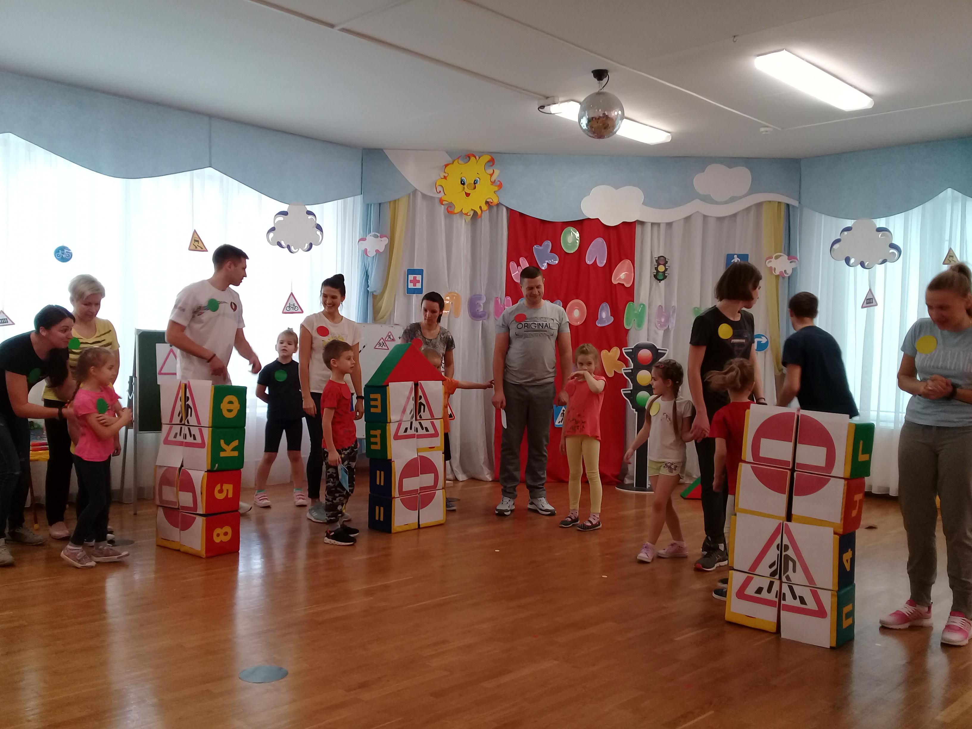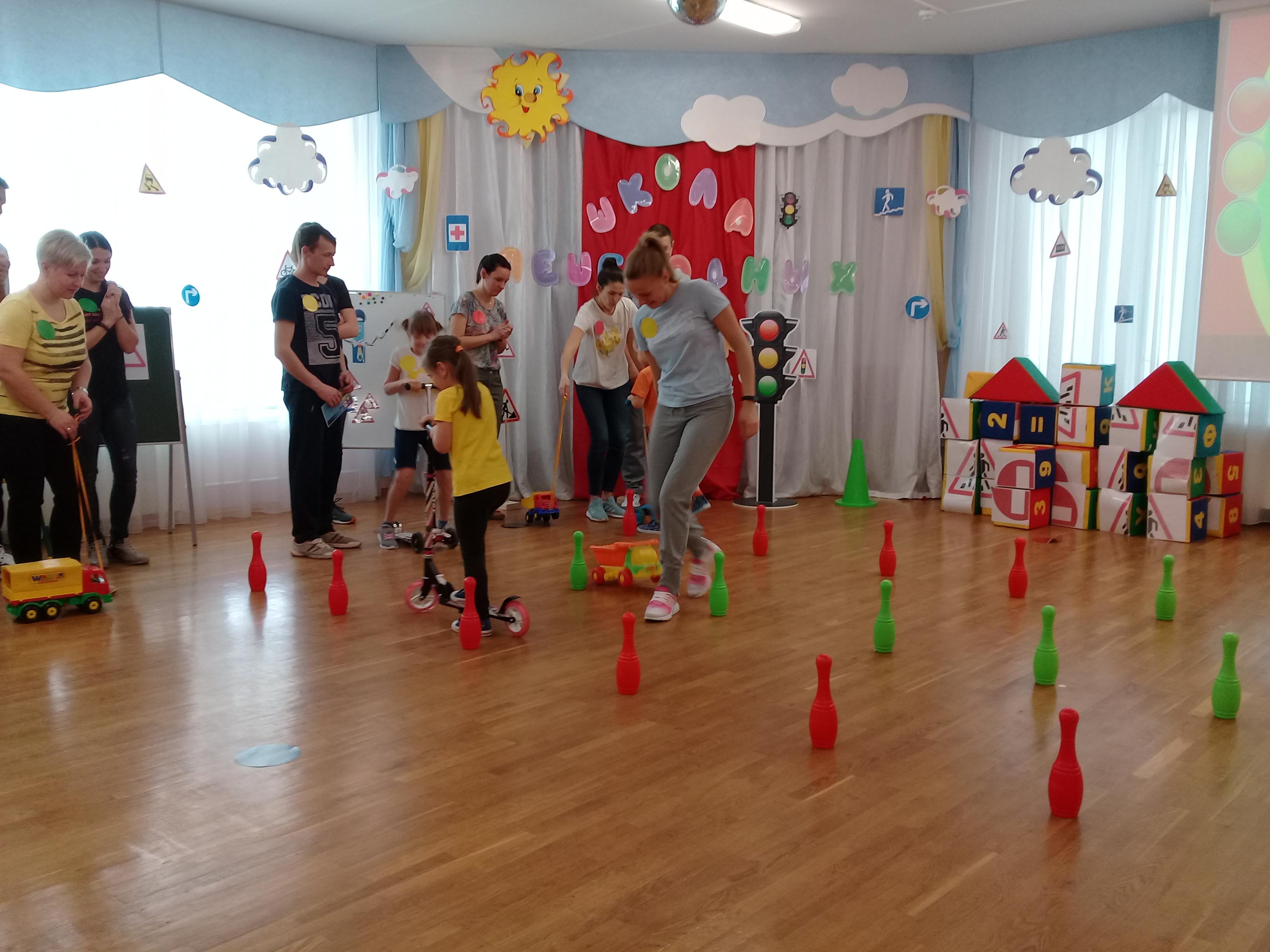 Воспитанники учреждения виртуозно управляли самокатом, взрослым же пришлось объезжать выставленные в ряд кегли, протянув за собой игрушечные грузовики. Следующим заданием было правильно дорисовать дорожный знак, очертания которого заранее было подготовлено на мольберте. Здесь за каждым движением карандаша следил приглашенный в жюри инспектор ГАИ, который оценивал знания участников. Кроме того, с помощью ребусов папы, мамы, и их детишки расшифровывали слова по дорожной тематике и отвечали на каверзные вопросы ведущего. За каждый пройденный этап в квест-игре участники получали слово из фразы, которую нужно было составить в конце мероприятия. В итоге все присутствующие дружно прокричали сложенное четверостишие «И большим, и маленьким, всем без исключения нужно знать и соблюдать правила движения!»
