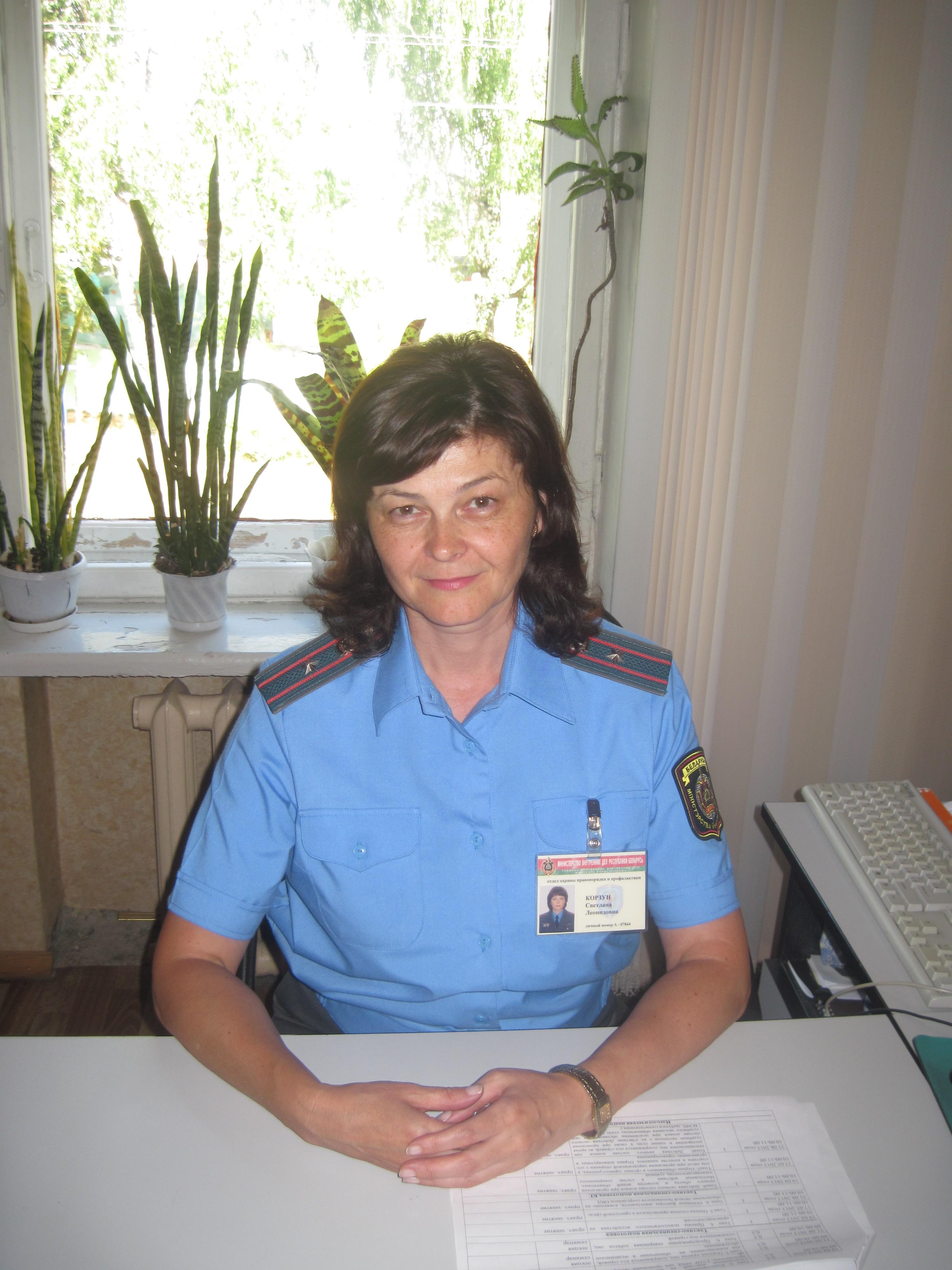 Сегодня майор милиции Корзун Светлана Леонидовна занимает должность старшего инспектора профилактики отдела охраны правопорядка и профилактики милиции общественной безопасности Партизанского РУВД столицы.