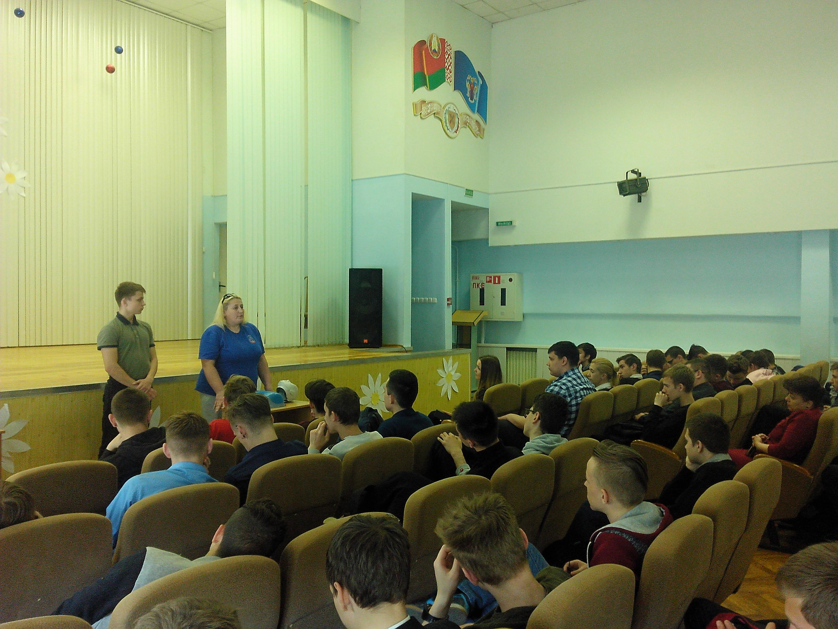 30.04.2019 в Минском государственном профессиональном лицее №14 деревообрабатывающего производства и транспортного обслуживания состоялась встреча учащихся 1-го курса (5 групп, 150 человек) с председателем ОСВОД Партизанского района Калиновым А.С. и медицинским работником МПГ Минской городской организацией ОСВОД Микульской Л.А. Учащиеся были ознакомлены с правилами поведения на водах в накануне купального сезона и мерами безопасности. Микульская Л.А. рассказала учащимся о правилах оказания первой медицинской помощи при утоплении. Учащиеся на практике опробовали проведения искусственного дыхания на макете. В ходе встречи учащимся были продемонстрированы видеофильмы о внешних признаках утопления, эвакуации потерпевшего и оказания первой медицинской помощи.