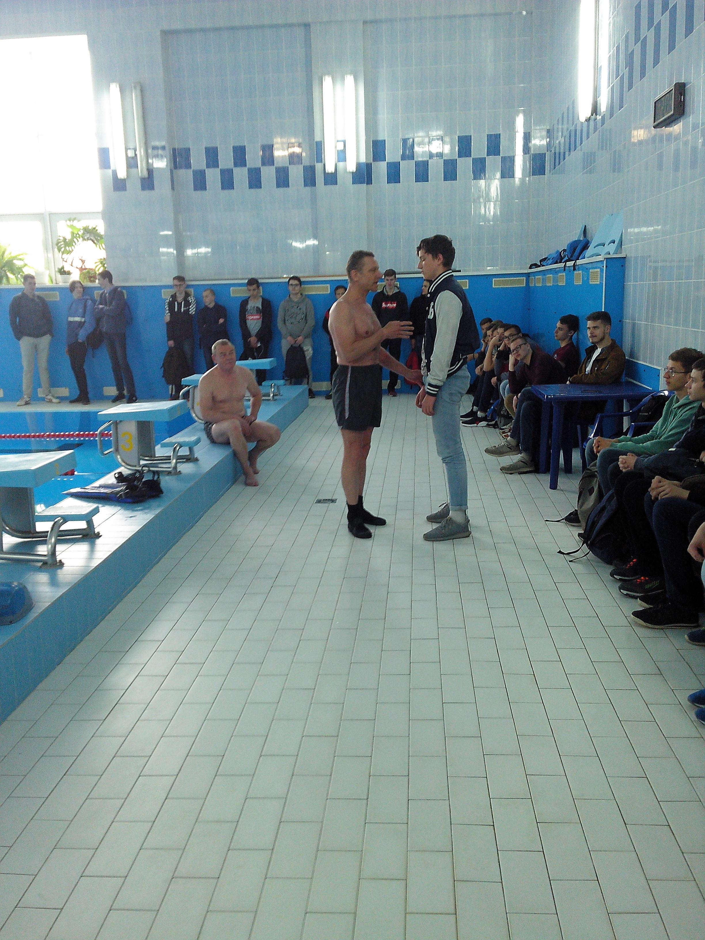 15.05.2019 года в бассейне УО РИПО ''Колледж современных технологий в машиностроении и автосервисе" прошло практические занятие с участием студентов колледжа по методам спасения утопающего. Водолаз-спасатель мобильной поисковой группы Сикорский Н.В. продемонстрировал способы эвакуации потерпевшего, а также продемонстрировал присутствующим способы освобождения от захватов потерпевшего во время спасения. Медицинский работник Филиппов И, показал учащимся порядок оказания первой помощи утопающему.