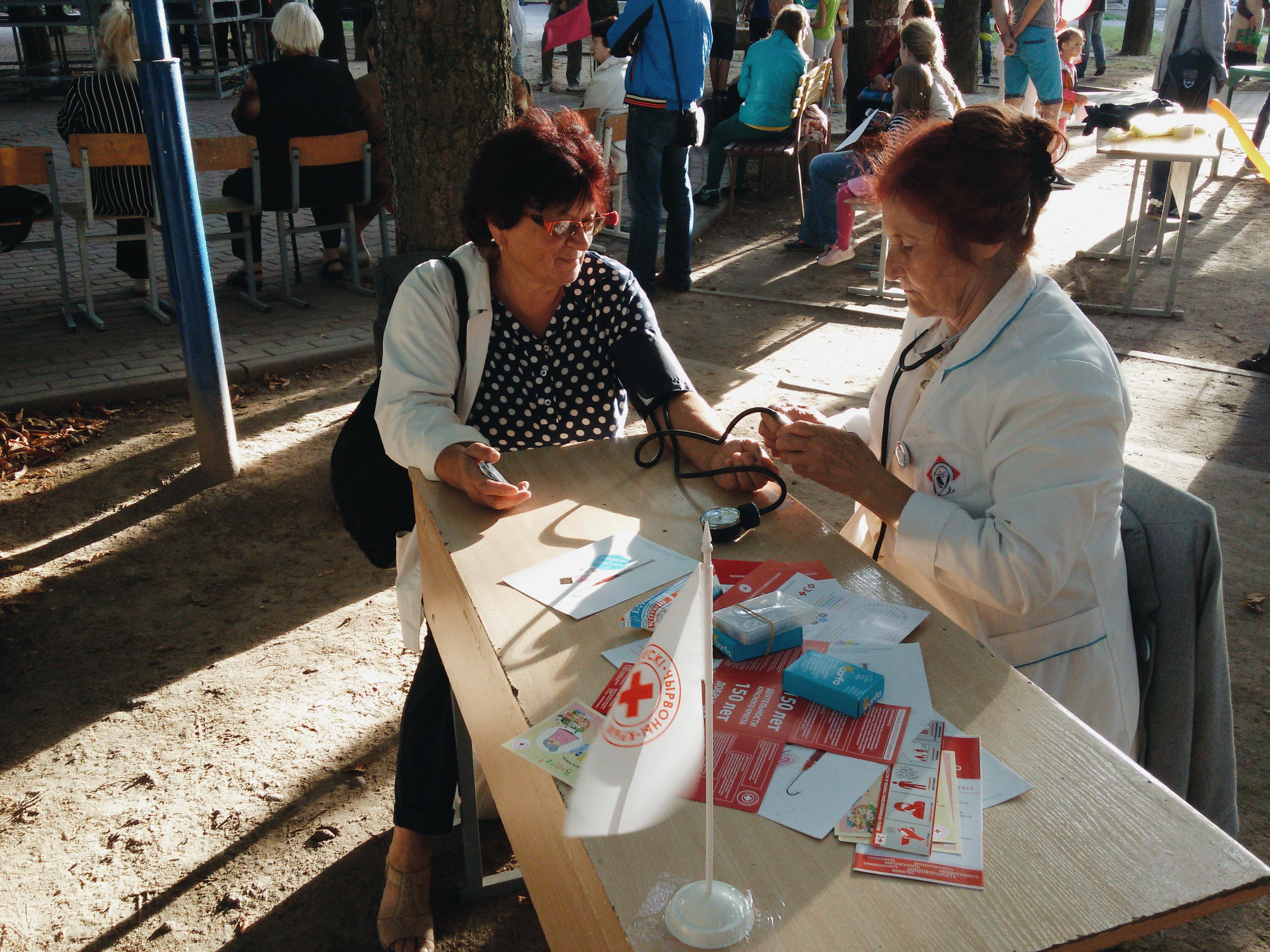 Наряду с праздничными мероприятиями, жители района имели возможность измерить артериальное давление у нашей медицинской сестры милосердия, поучаствовать в мастер-классе по первой помощи, получить информацию о деятельности районной организации Красного Креста.