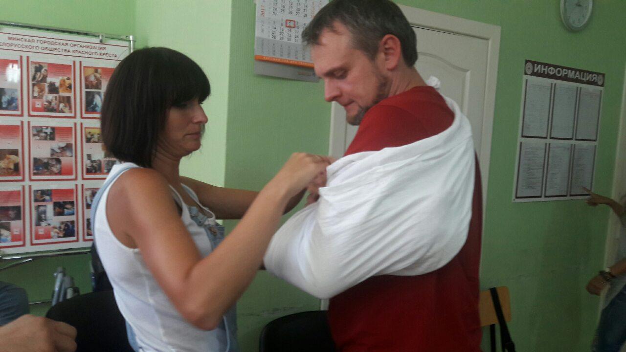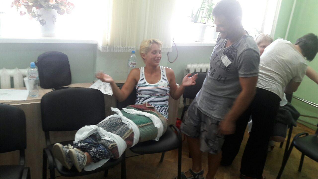 9 августа в учебном центре МГО БОКК состоялся тренинг по первой помощи. Благодаря волонтерам-инструкторам Партизанской районной организации Белорусского Общества Красного Креста стало больше людей готовых в экстренной ситуации спасти человека и при этом не упасть в обморок при виде крови. Все не только в теории послушали, как делать сердечно-легочную реанимацию, но и провели ее самостоятельно. Ведь работа тренинга строится по принципу: 30% — теории, 70% — практики.